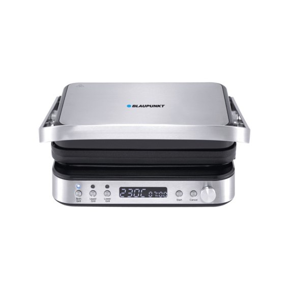 Dwustronne płyty grzejne o powierzchniach karbowanej lub gładkiej pozwalają na jednoczesne opiekanie różnych rodzajów produktów. Płaska doskonale nadaje się do opiekania warzyw, zaś karbowana do grillowania mięsa. Część karbowana dodatkowo pozwala odprowadzić nadmiar tłuszczu, co sprawia, że możemy cieszyć się bardziej lekkostrawnymi daniami. Użytkownik może sobie także wybrać, czy chce przypiec bardziej potrawę z góry, z dołu, czy równomiernie góra i dół. Dla wielbicieli czegoś słodszego, model GRS901 posiada dodatkowy komplet płyt do przygotowywania gofrów na deser.#13#10#13#10Pokrywę grilla można w każdej chwili rozłożyć do 180 stopni, co daje możliwość upieczenia większej ilości produktów za jednym razem. Mechanizm zawiasów posiada funkcję blokowania. Jest to szczególnie wygodne, kiedy zamkniemy grill i będziemy chcieli go odstawić. Blokada uniemożliwi otworzenie się grilla.