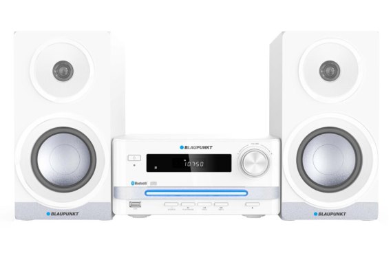 Model MS16BT EDITION marki Blaupunkt, wyposażony w funkcję Bluetooth, umożliwia odtwarzanie utworów zapisanych na smartfonie, laptopie lub dostępnych w serwisach internetowych. Wbudowany odtwarzacz CD z odczytem plików MP3/WMA umożliwia odtwarzanie płyt Audio-CD, plików MP3 dostępnych na nagrywanych nośnikach CD-R i płytach wielokrotnie nagrywanych CD-RW. Do dyspozycji jest również port USB, do którego można podłączyć wszelkiego rodzaju pamięci typu pendrive o maksymalnej pojemności do 32 GB i odtwarzać zamieszczony na nich materiał dźwiękowy. Producent wyposażył to nowoczesne urządzenie w equalizer z fabrycznymi ustawieniami POP, ROCK, JAZZ, CLASSIC, DANCE, dzięki czemu użytkownik ma możliwość dostosowania profilu brzmienia do rodzaju odsłuchiwanego materiału i może dać się ponieść ulubionej muzyce. Funkcja LOUDNESS, która podnosi poziom wysokich i niskich tonów, pozwala natomiast zwiększyć ogólną dynamikę dźwięku, co jest szczególnie przydatne przy niskim poziomie głośności. W celu dopasowania profilu brzmienia do własnych preferencji model MS16BT Edition wyposażono również w oddzielną regulację basów i sopranów.Ten mini zestaw hi-fi posiada także radio FM z pamięcią 40 stacji dzięki czemu istnieje możliwość wprowadzenia do pamięci swoich ulubionych rozgłośni, eliminując w ten sposób konieczność każdorazowego ich wyszukiwania. Tuner obsługuje zarówno automatyczny, jak i manualny tryb strojenia. Ręczne zapamiętywanie stacji pozwala zaprogramować je w żądanym przez użytkownika porządku. Dostępny jest również przełącznik pomiędzy odbiorem sygnału w trybie stereo lub mono dla zapewnienia jeszcze lepszego odbioru sygnału radiowego. Kolejną istotną funkcjonalnością mikrowieży MS16BT EDITION jest zegar z funkcją alarmu, który obudzi każdego śpiocha dźwiękami ulubionej muzyki. Alarm może być realizowany za pomocą wybranej stacji radiowej, materiału z odtwarzacza CD/USB, a także za pomocą niezwykle skutecznego brzęczyka. Moc wyjściowa zaimplementowanego wzmacniacza wynosi 15 W RMS, a moc maksymalna całego zestawu to 45 W.Model MS16BT EDITION prezentuje się bardzo elegancko, a jego obsługę ułatwia pilot zdalnego sterowania oraz czytelny wyświetlacz LED. Podświetlana tacka odtwarzacza CD, nowoczesne, odkryte głośniki oraz elegancki, biały kolor obudowy tworzą całość, która będzie wyjątkowo prezentowała się w każdym nowoczesnym wnętrzu. Specyfikacja:Odtwarzacz CD/-R/-RWObsługa formatów MP3/WMABluetooth do odtwarzania muzykiRadio FM z cyfrową syntezą PLLPamięć 40 stacji FMWejście USB do odtwarzania muzykiObsługa nośników USB o pojemności do 32 GBMoc maksymalna: 45 W (2 x 22,5 W)Moc wyjściowa RMS: 15 W (2 x 7,5 W)Regulacja wysokich i niskich tonówFunkcja LoudnessEqualizer: (Classic, Rock, Pop, Jazz, Dance, Live)Zegar z alarmemWyświetlacz LEDWejście AUXPilot zdalnego sterowaniaZasilanie sieciowe: AC 220-240 V~50/60 HzWymiary urządzenia: 220 (szer.) x 102 (wys.) x 238 (gł.) mmWymiary głośników: 125 (szer.) x 244 (wys.) x 184 (gł.) mm