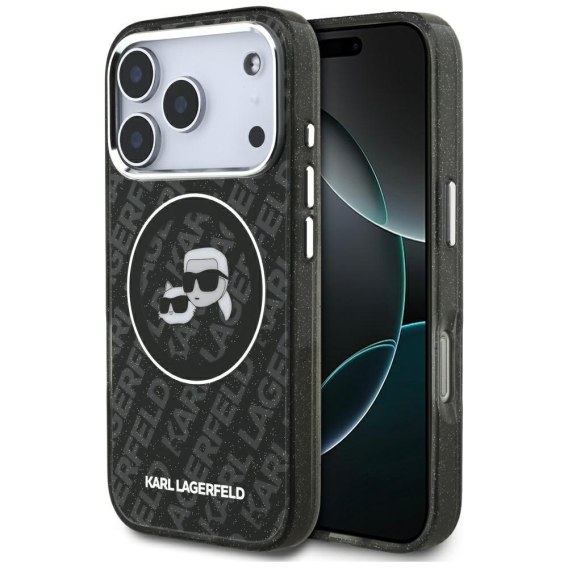 Karl Lagerfeld nakładka Magsafe IML glitter case metal camera frame and buttons Karl and Choupette heads on KL repeated logo do