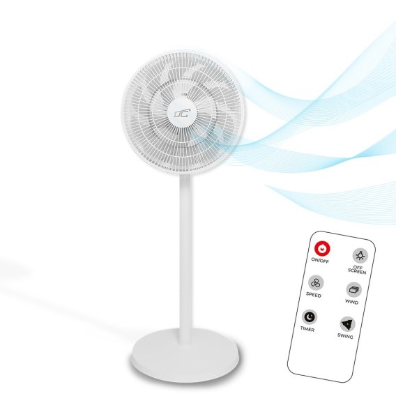 Wentylator stojący WT112 45W 12" cyfrowy wyświetlacz, pilot, oscylacja, biały