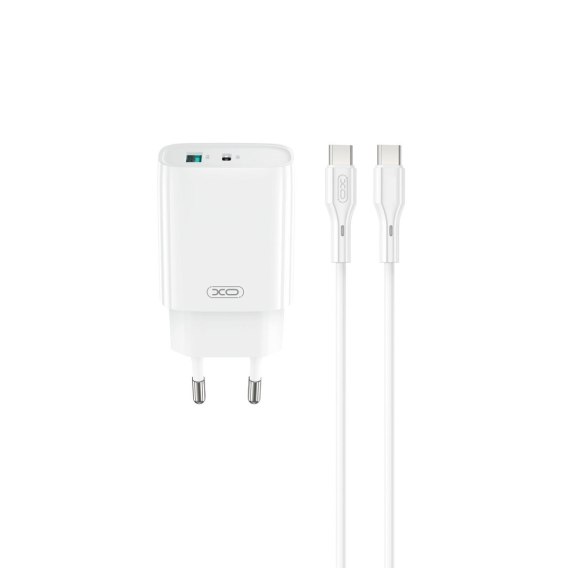 XO ładowarka sieciowa CE30 PD 30W 1x USB-C 1x USB biała + kabel USB-C - USB-C
